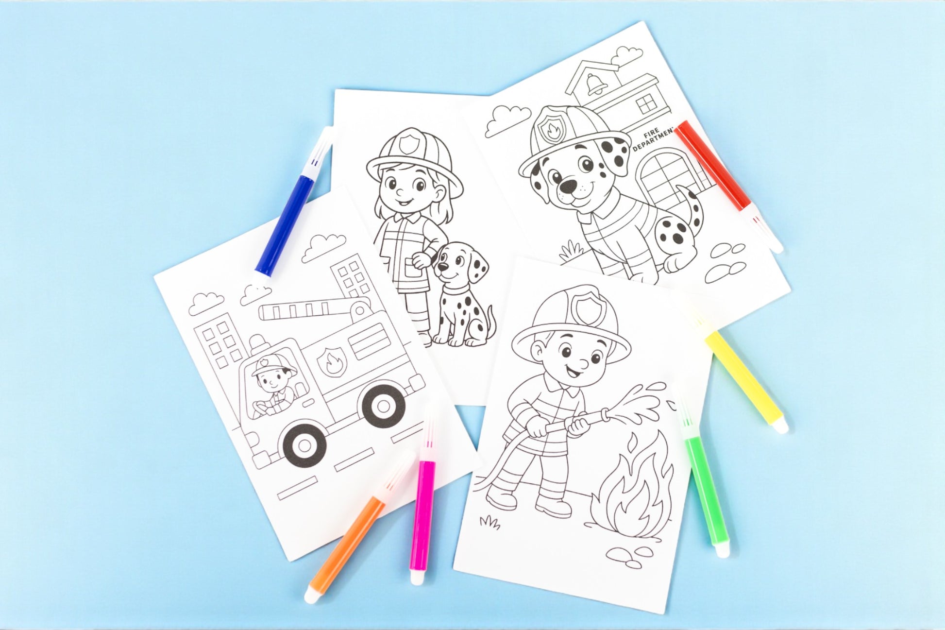 Fire fighter themed colouring pages