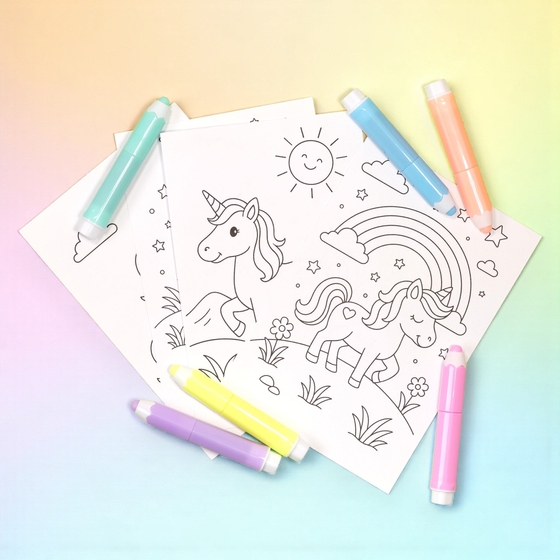 Unicorn themed colouring pages